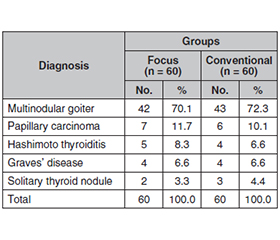 - Cannizzaro MA, Lo Bianco S, Borzì L, Cavallaro A, Buffone A. The use of FOCUS Harmonic scalpel compared to conventional haemostasis (knot and tie ligation) for thyroid surgery: a prospective randomi–zed study. Springerplus. 2014;3:639. doi: 10.1186/2193-1801-3-639.