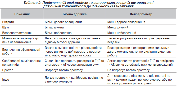 Таким чином, вибір певного обладнання залежить від можливості лабораторії або індивідуальних вподобань, оскільки обидва методи забезпечують отримання надійних фізіологічних вимірювань та мають однакову діагностичну цінність для визначення толерантності до фізичного навантаження [30].