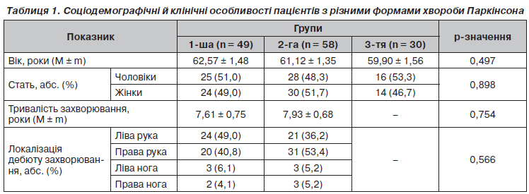 Соціодемографічні показники й загальна клінічна характеристика обстежуваних пацієнтів наведені в табл. 1.