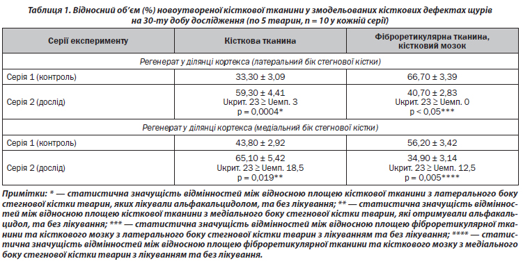 Вплив альфакальцидолу на регенерацію кістки у щурів старечого віку
