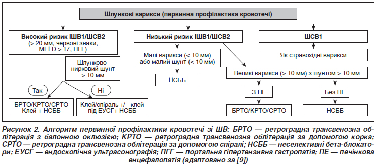 Варикозне розширення стравохідних і шлункових вен є основним клінічним проявом цирозу печінки та портальної гіпертензії. Кровотеча з варикозно розширених вен шлунка зазвичай є тяжкою і пов’язана з вищою смертністю та більшим ризиком повторної кровотечі, ніж при стравохідних вариксах. Лікування варикозної кровотечі є складним і часто вимагає мультидисциплінарного підходу, що включає фармакологічні, ендоскопічні та радіологічні втручання. З точки зору лікування можна розглянути три етапи: первинна профілактика, активна кровотеча та вторинна профілактика. Основною метою первинної та вторинної профілактики є запобігання варикозній кровотечі. Однак активна варикозна кровотеча вимагає швидкого втручання для її зупинки та досягнення тривалого гемостазу. У цьому огляді описані особливості фармакологічного, ендоскопічного та інтервенційного радіологічного варіантів профілактики та лікування кровотеч зі шлункових вариксів. Пошук літератури здійснювався в базі даних MedLine на платформі PubMed.