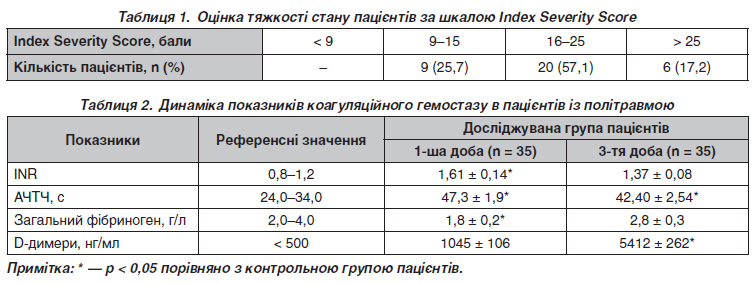 Особливості коагуляційного гемостазу в пацієнтів з політравмою