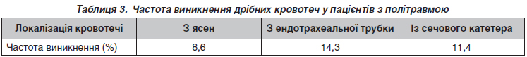 Background. Post-traumatic coagulopathy develops in 40 % of trauma patients and is the most common cause of death in them. The objective was to study and analyze changes in indicators of coagulation hemostasis, to evaluate the frequency of minor bleedings in patients with polytrauma. Materials and methods. A prospective observational cohort study was conducted among 35 patients with a diagnosis of polytrauma who were treated at the Municipal Non-Profit Enterprise “Lviv First Territorial Medical Association” of the St. Luke’s Hospital, in the anesthesiology unit with intensive care beds, from January 1, 2021 to August 1, 2022. The inclusion in the treatment of tranexamic acid on the first day after polytrauma was evaluated by dividing the obtained data into time intervals: the prehospital stage and the first 3 hours after admission; 3–8 and 8–24 hours after admission for treatment. Coagulation hemostasis was assessed by the international normalized ratio, partial thromboplastin time (PTT), level of total fibrinogen and D-dimers. The occurrence of minor bleedings was determined visually. Research stages: first day (d1), third day (d3) after polytrauma. Results. We studied indicators of coagulation hemostasis: on the first day, there is a significant increase in prothrombin time, a decrease in the prothrombin index and the level of total fibrinogen, an increase in the international normalized ratio and PTT. On the third day after injury, all studied indicators, with the exception of PTT, did not reliably differ from similar indicators of the control group. The level of D-dimers at all stages of the study was higher than normal values. After assessing the frequency of minor bleedings in patients 1–5 days after the injury, it was found that such bleedings were not associated with coagulation disorders. Conclusions. When analyzing the coagulation hemostasis, we have revealed that on the third day after injury, all indicators, except PTT, became normal. It was found that the occurrence of minor bleedings was not associated with coagulation disorders; therefore, they might be associated with vascular and platelet changes or fibrinolytic disorders.