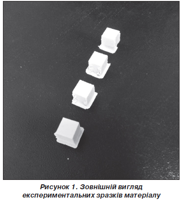 Для проведення експерименту було виготовлено по 5 зразків матеріалу з поруватістю 70, 50, 30 та 10 %. Зразки були кубічної форми, зі стороною ребра 10 мм (рис. 1).