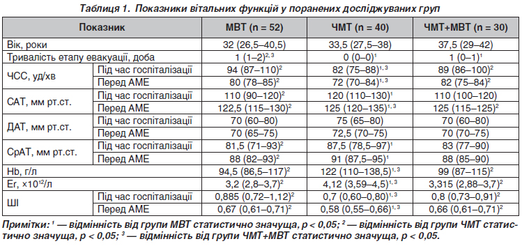 Оцінка ефективності корекції крововтрати у постраждалих із проникними мінно-вибуховими травмами на етапі стабілізації та підготовки до аеромедичної евакуації