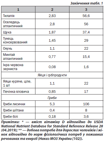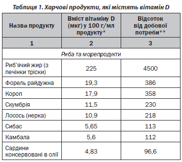 Харчові джерела надходження вітаміну D