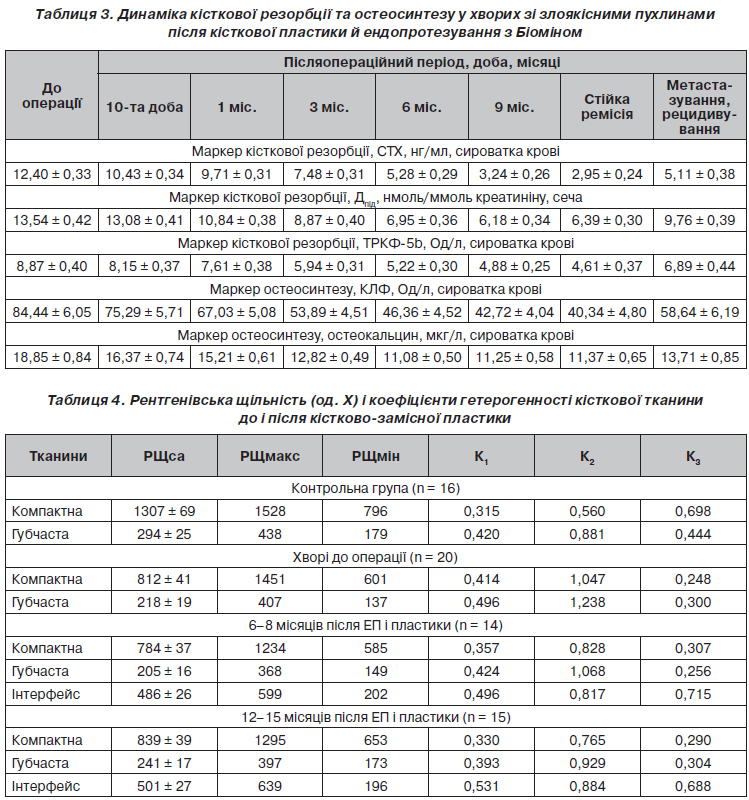 Застосування маркерів кісткової резорбції й остеосинтезу дозволяє контролювати остеоінтеграцію та своєчасно діагностувати рецидивування/метастазування.