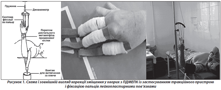 Background. For the restorative rehabilitation of orthopedic trauma patients with fractures of the distal metaepiphysis of the radius, a set of methods aimed at restoring lost functions is used at home. The main complications in these patients are contractures and neurodystrophic syndrome of varying severity. Prevention of complications in fractures of this localization is based on adequate anesthesia during repositioning, its low-traumatic technique, optimal immobilization, medication, physiotherapy and kinesiotherapy. Taking into account that the majority of victims with fracture of the distal metaepiphysis of the radius are elderly people with possible difficulties in visiting the hospital, it is very important to provide instruction and rehabilitation treatment at home. The purpose was to improve the results of rehabilitation of patients with fractures of the distal metaepiphysis of the radius on the basis of improving the components at home. Materials and methods. We studied 63 patients with fractures of the distal metaepiphysis of the radius with comminution. All patients underwent displacement correction and immobilization with a semi-rigid functional bandage system with Scotchcast/Softcast. Full multimodal analgesia was very important in the prevention of the development of posttraumatic neurodystrophic syndrome of VAT at the initial stages. This was achieved by the following methods. For local anesthesia, a 1% lidocaine solution in a volume of 10–15 ml was used. The exposure lasted at least 5–10 minutes, until the effect of complete pain relief was achieved. Dexalgin® was administered intramuscularly. After anesthesia, the displacement was corrected using a traction device and fixation of the fingers with adhesive bandages. Results. The overwhelming majority of patients (48 — 76.1 %) assessed the repositioning of the fragments as painless, and only 15 (23.9 %) reported unpleasant sensations (4.30 ± 0.21 VAS points — moderate pain). Already on the fourth day after admission, the victims noted a decrease in pain intensity from 7.42 ± 0.31 to 2.40 ± 0.12 points on days 7 and 14 according to the VAS (satisfactory pain tolerance). The same indicators were preserved until the end of immobilization, even with kinesitherapy. During a survey of patients using the DASH scale, the function of the injured arm was determined by 52 (82.5 %) patients as satisfactory (33.20 ± 0.41 points), sufficient for self-care without heavy physical exertion. Only 2 (3.2 %) patients had severe neurotrophic and functional disorders, and the result was unsatisfactory. Thus, the results of treatment of patients with fractures of the distal metaepiphysis of the radius with active rehabilitation tactics at home should be considered good. Conclusion. Prevention of complications in fractures of the distal metaepiphysis of the radius consisted of adequate anesthesia, minimally traumatic repositioning technique using the proposed devices, optimal immobilization, medication, physiotherapy and kinesiotherapy. Kinesitherapy was performed in combination with safe anesthesia. These components had their own peculiarities at different stages. The data of pain syndrome according to VAS and functional results according to DASH indicate the high effectiveness of rehabilitation measures, including at home.